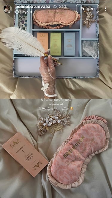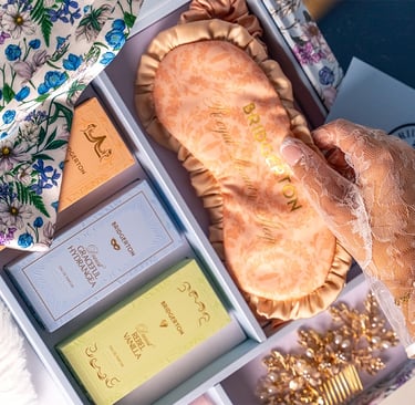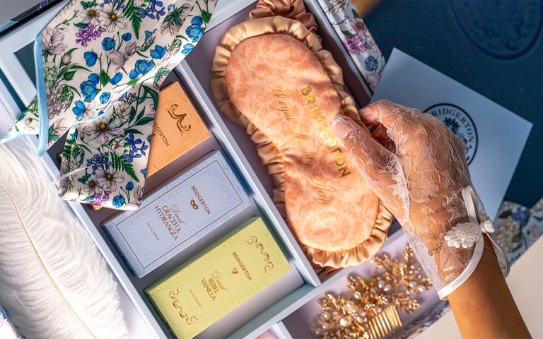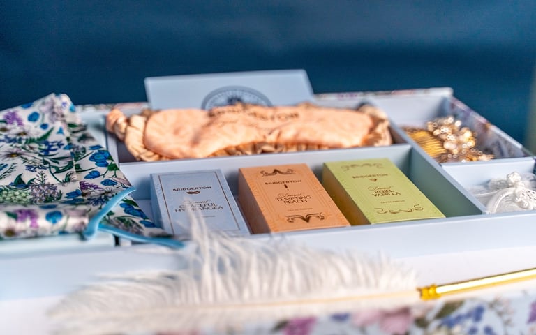 Beyond the physical design, I collaborated on the selection and placement of the items inside the kit to encourage interaction and storytelling from influencers. Each element was chosen to invite them into the world of Bridgerton and enhance engagement with the brand.