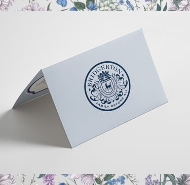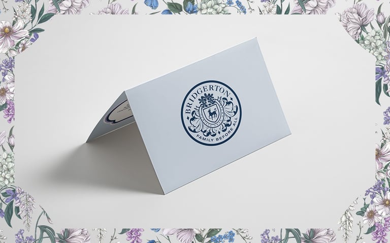 The kit also included a personalized note, written and designed to introduce recipients to the Bridgerton universe and set the tone for the experience. In addition, I designed a branded booklet that accompanied the box and was also used for events, extending the visual language and narrative of the campaign beyond the initial unboxing.