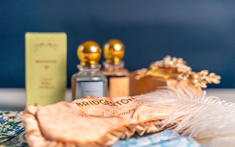 The kit included a personalized introductory note and a branded booklet, designed for both the box and event use, extending the Bridgerton narrative beyond the unboxing.