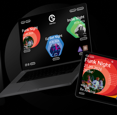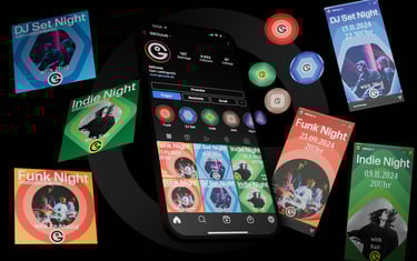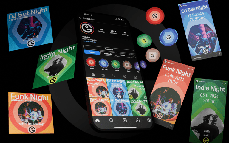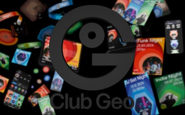 Club Geo transforms sound into visuals: shapes that ripple like waves, color gradients that move from loud to quiet, and a clean, minimalist design. Music from across the world comes together in a unified system, expressed through a logo that combines the letters of Club Geo, the globe, and the people within it.